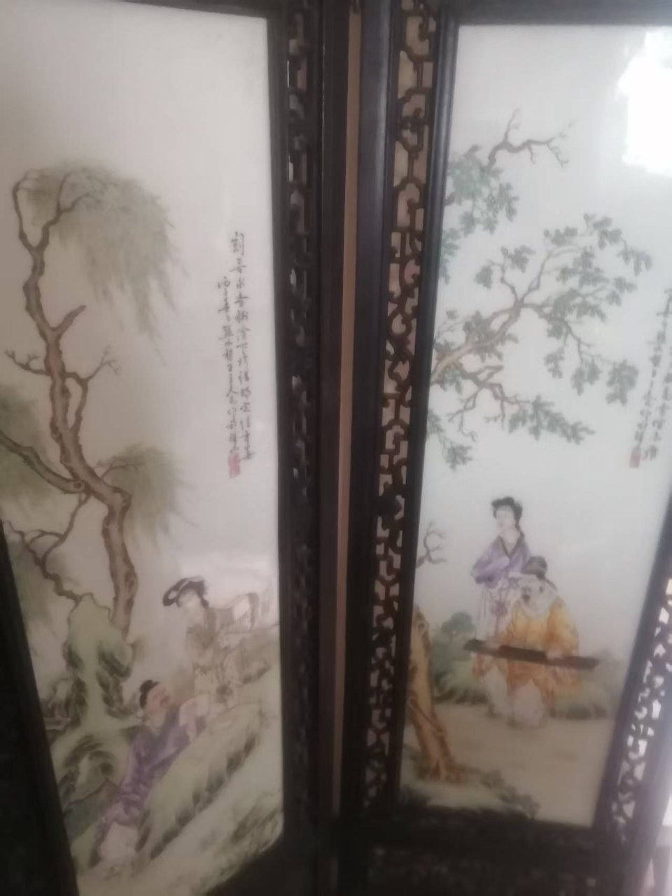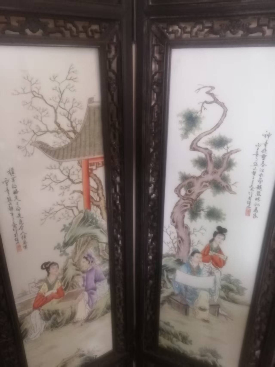 民国王大凡的瓷版画屏风,琴棋书画,高1米88宽两米