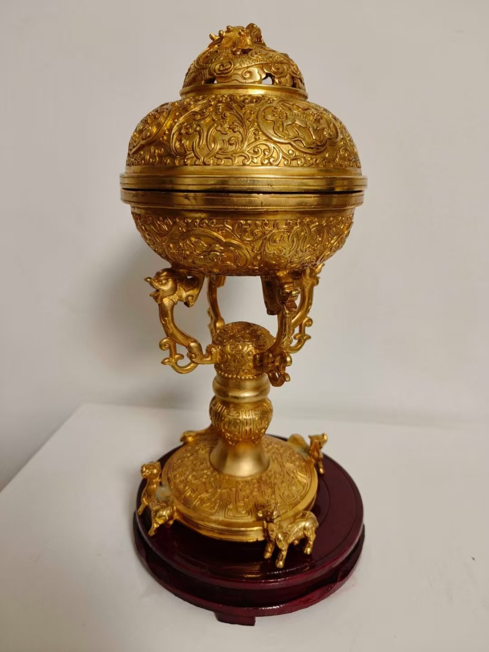 大清狗头金鎏金香炉