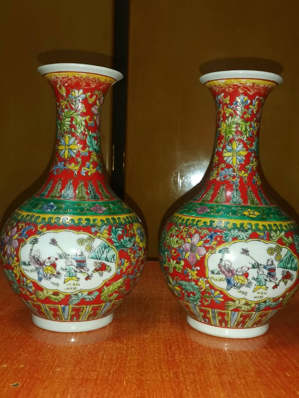 粉彩开光婴戏纹赏瓶