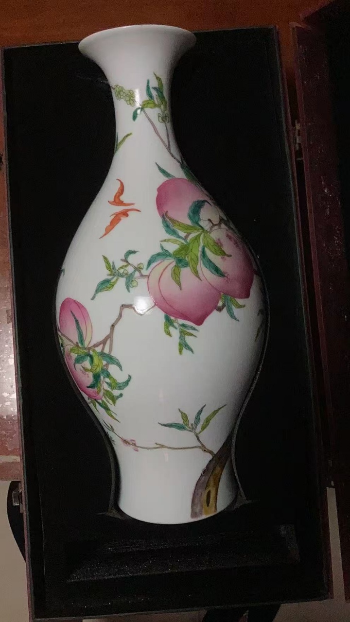 雍正粉彩福寿橄榄瓶
