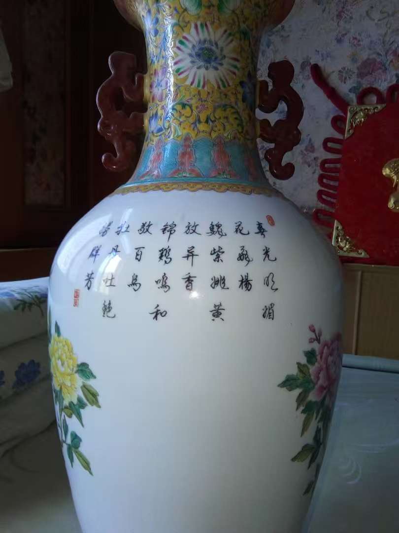清乾隆粉彩锦鸡牡丹詩文赏瓶