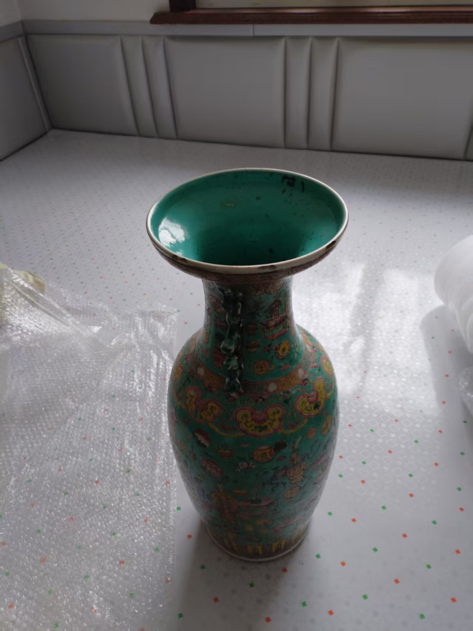 满彩松石釉粉彩双耳瓶