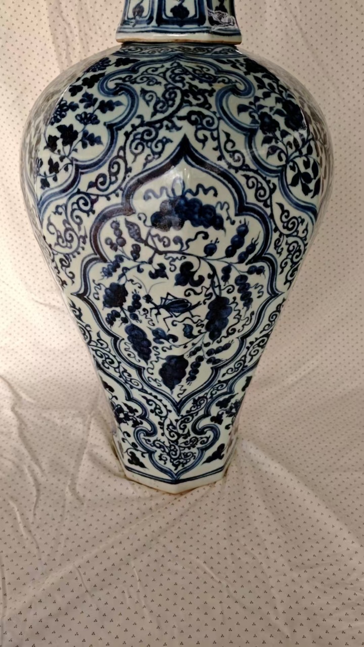 青花凤凰虫草纹八棱梅瓶(带盖)