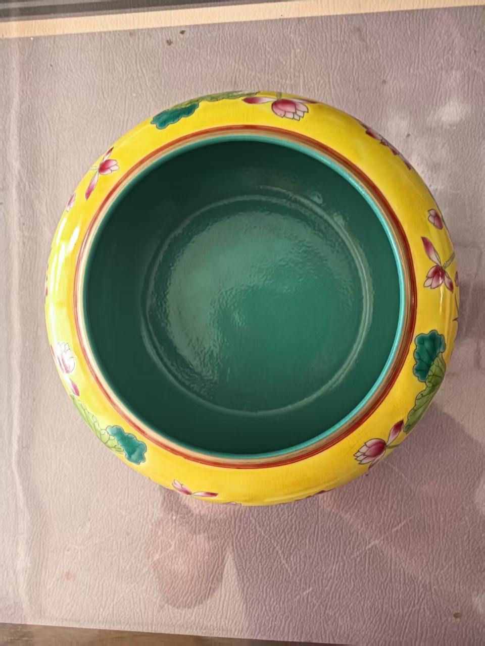 雍正黄地粉彩荷花纹笔洗