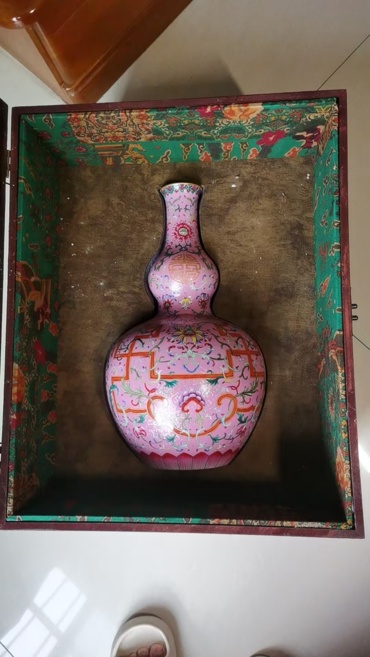 清乾隆粉地粉彩万寿缠枝花卉葫芦瓶