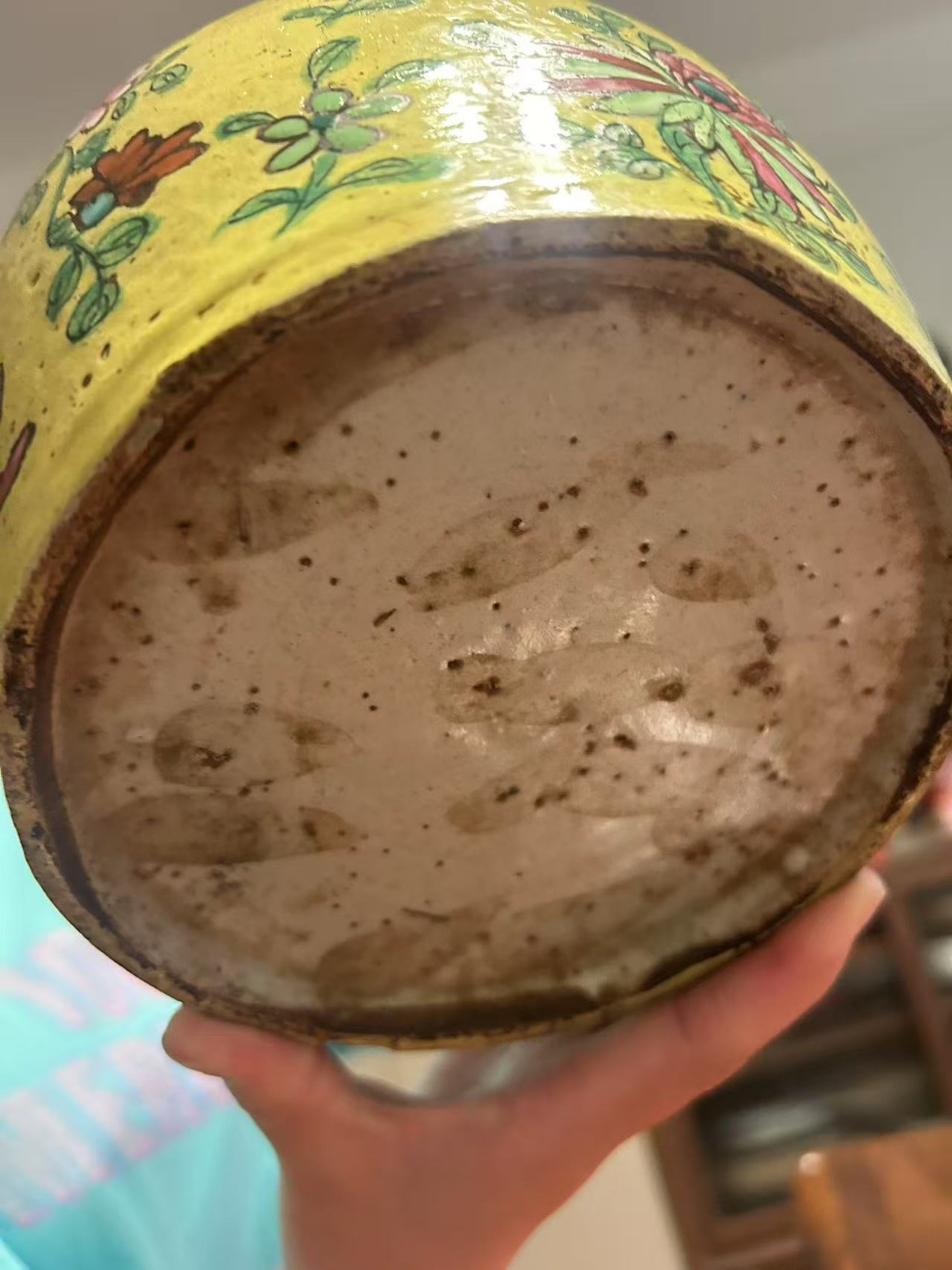 黄釉粉彩花卉纹罐