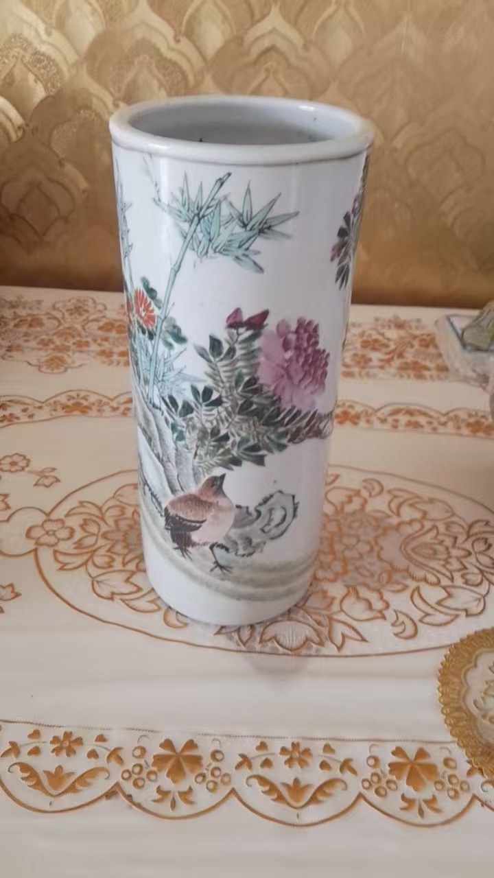 粉彩花鸟帽桶