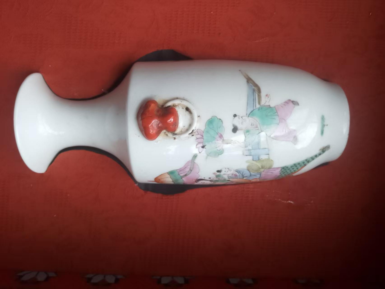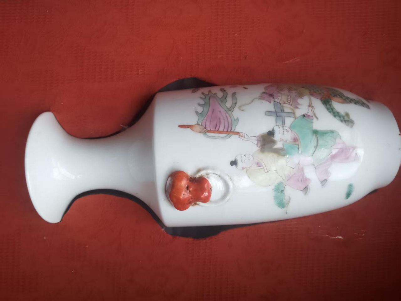 粉彩人物麒麟送子虎环耳赏瓶