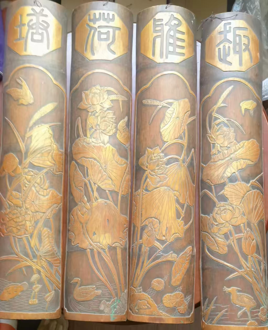 鎏金竹雕荷花图