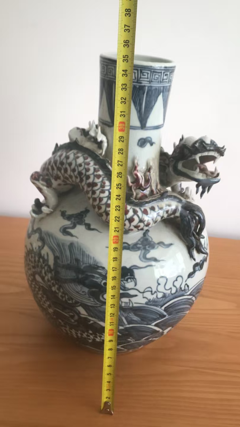青花(加彩)堆塑龙纹天球瓶