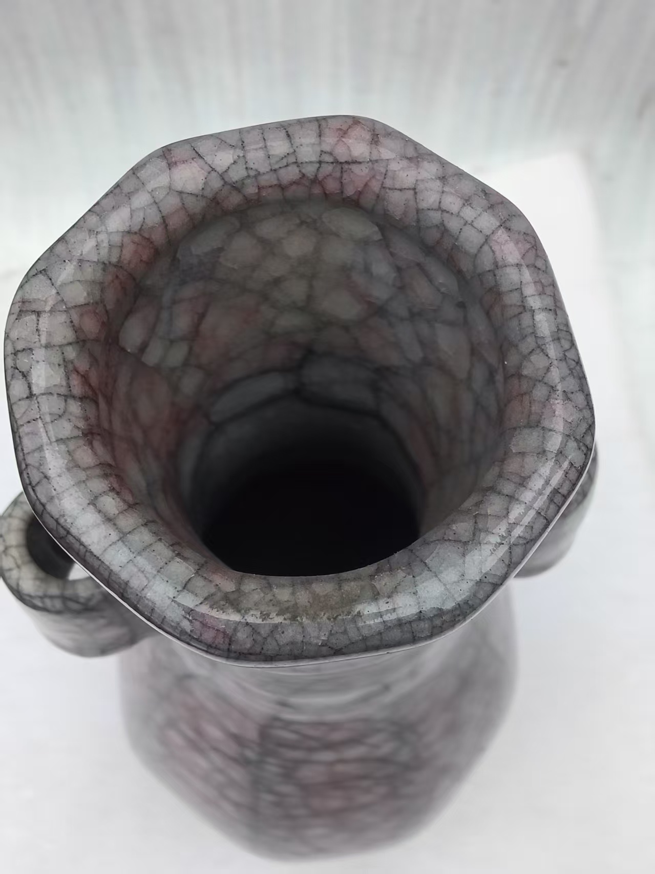 哥窑倭角八方贯耳瓶