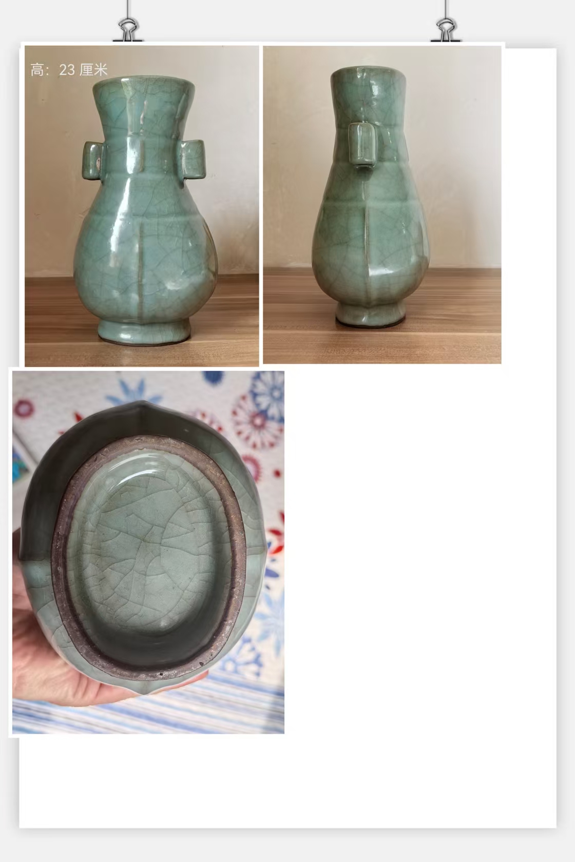宋代官窑贯耳瓶
