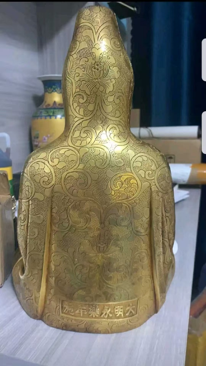 大明永乐鎏金观音像,高30cm,宽21cm,重15斤