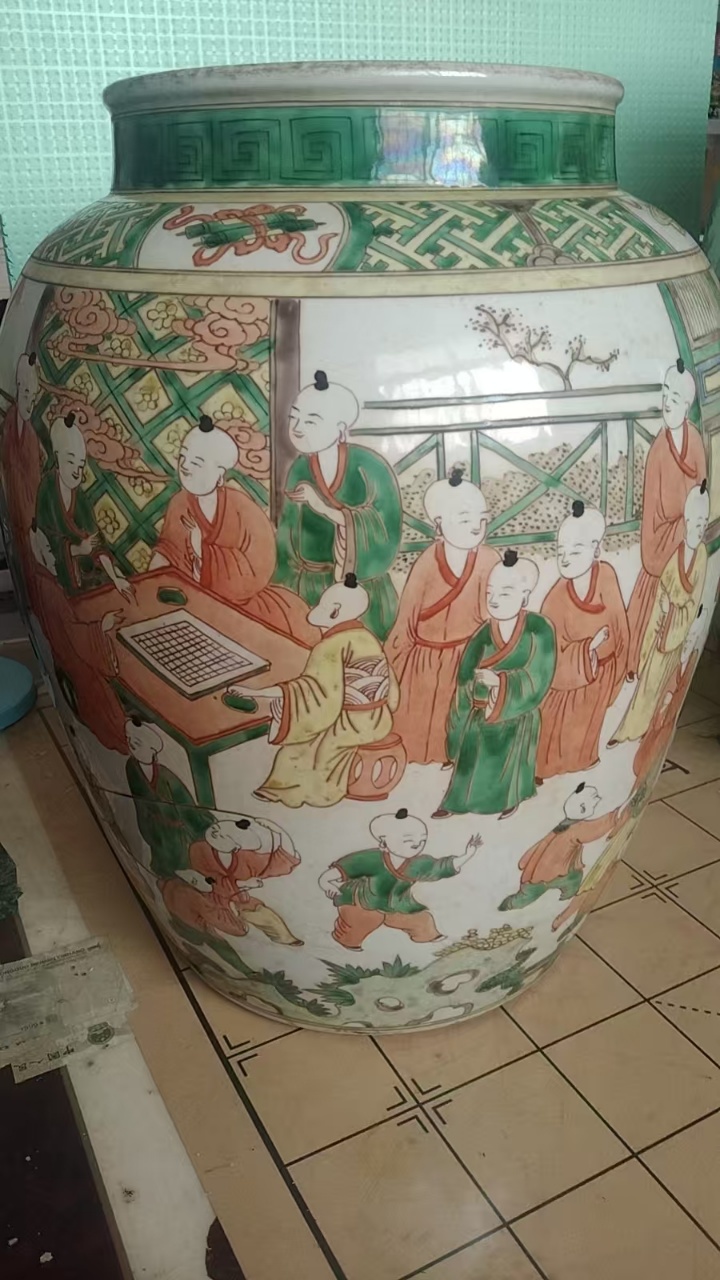 大清康熙五彩百子图大罐