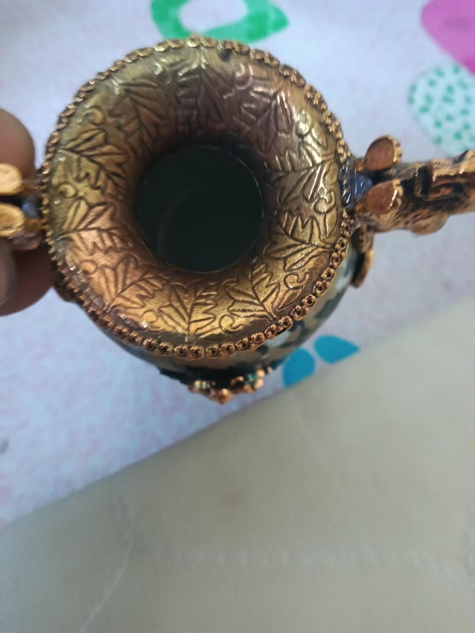 鎏金錾刻青花瓷瓶