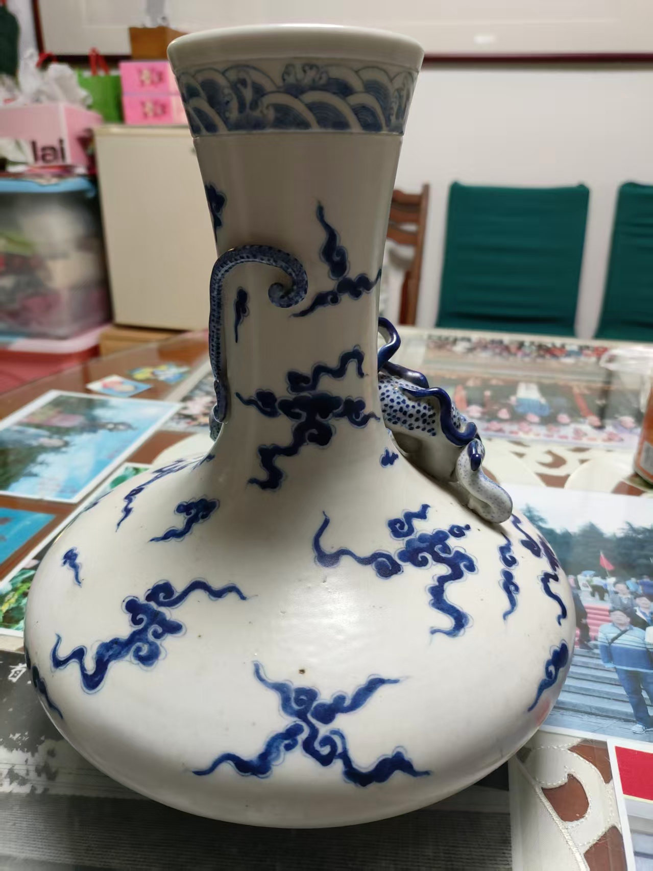 青花塑龙云水纹荸荠赏瓶