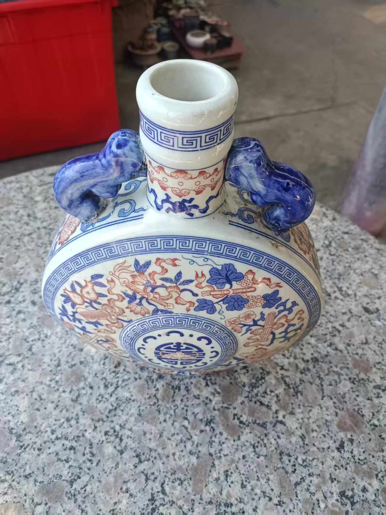 乾隆六字款 青花釉里红包月瓶33.5Ⅹ25