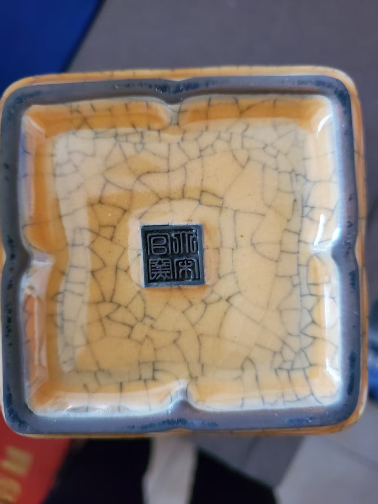大宋官窑款黄釉四方花口瓷尊