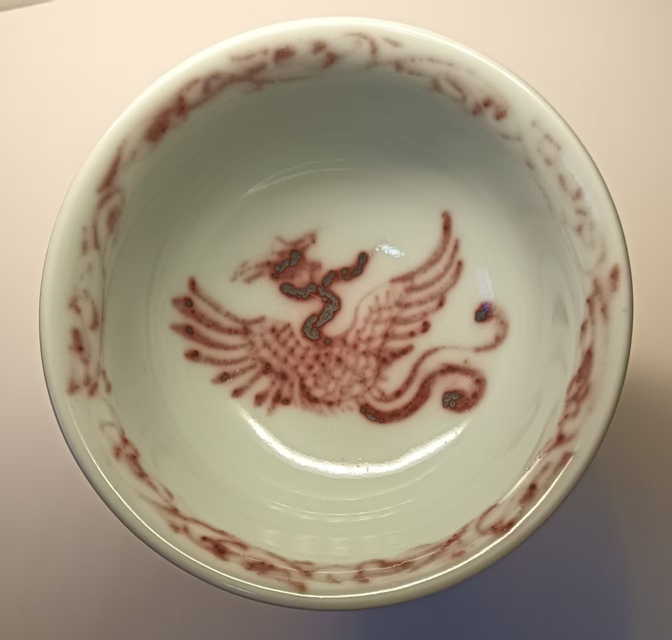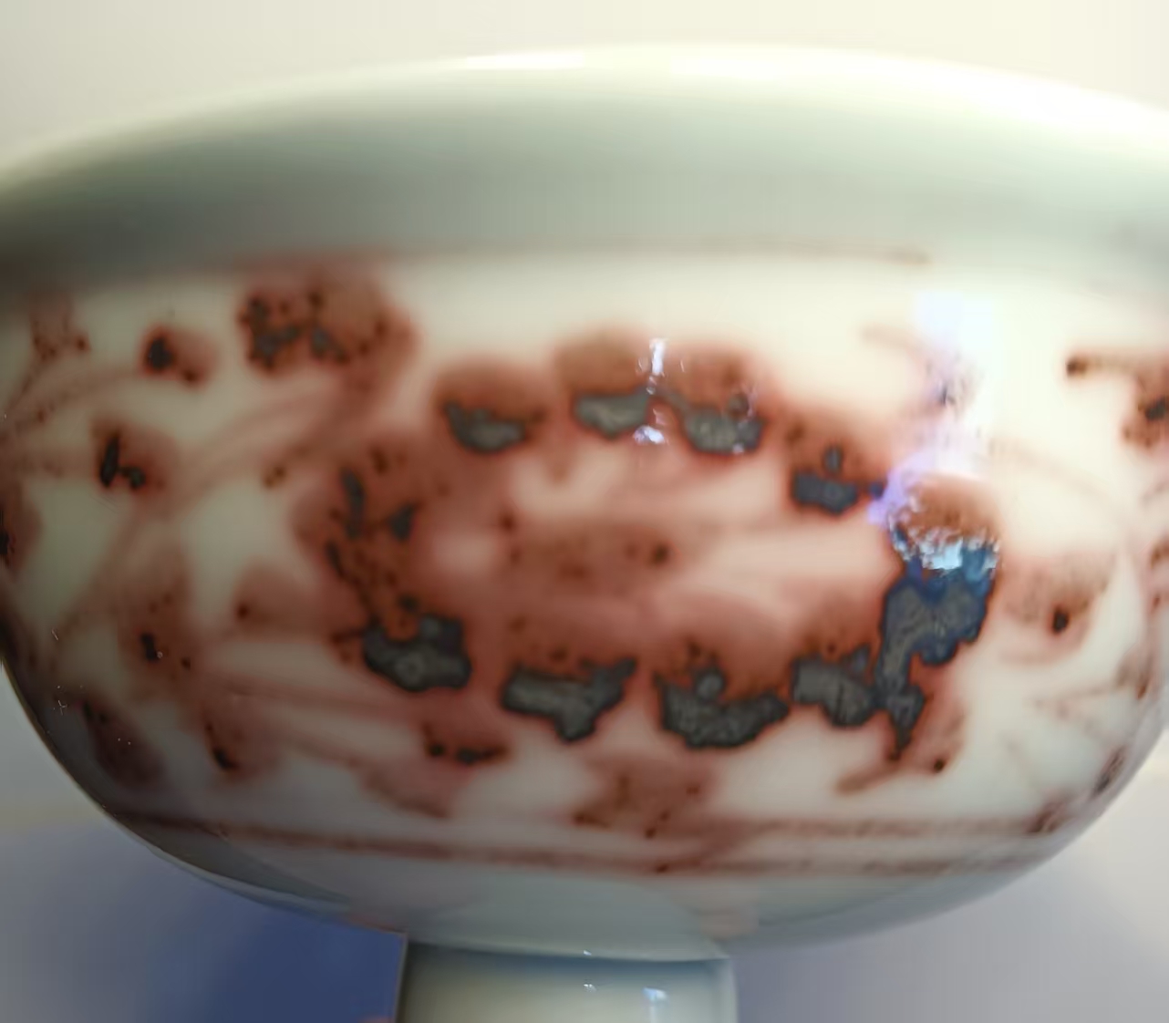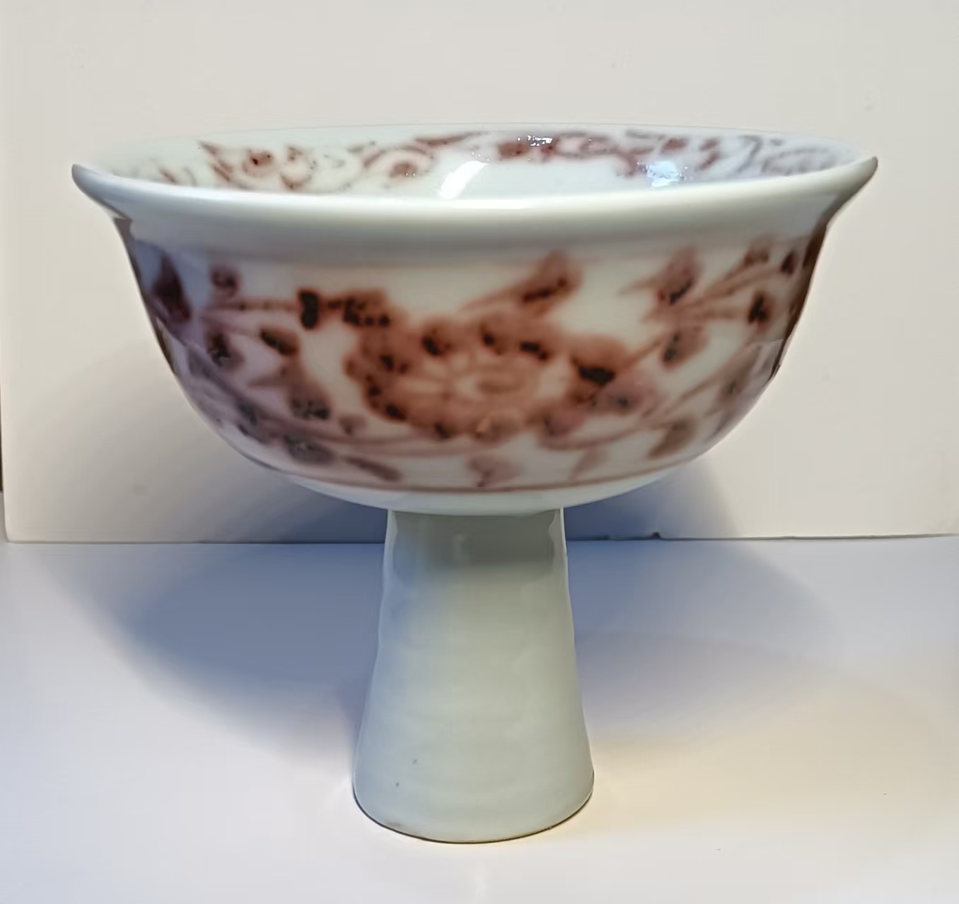 元末明初釉里红凤凰缠枝花卉纹高足杯
