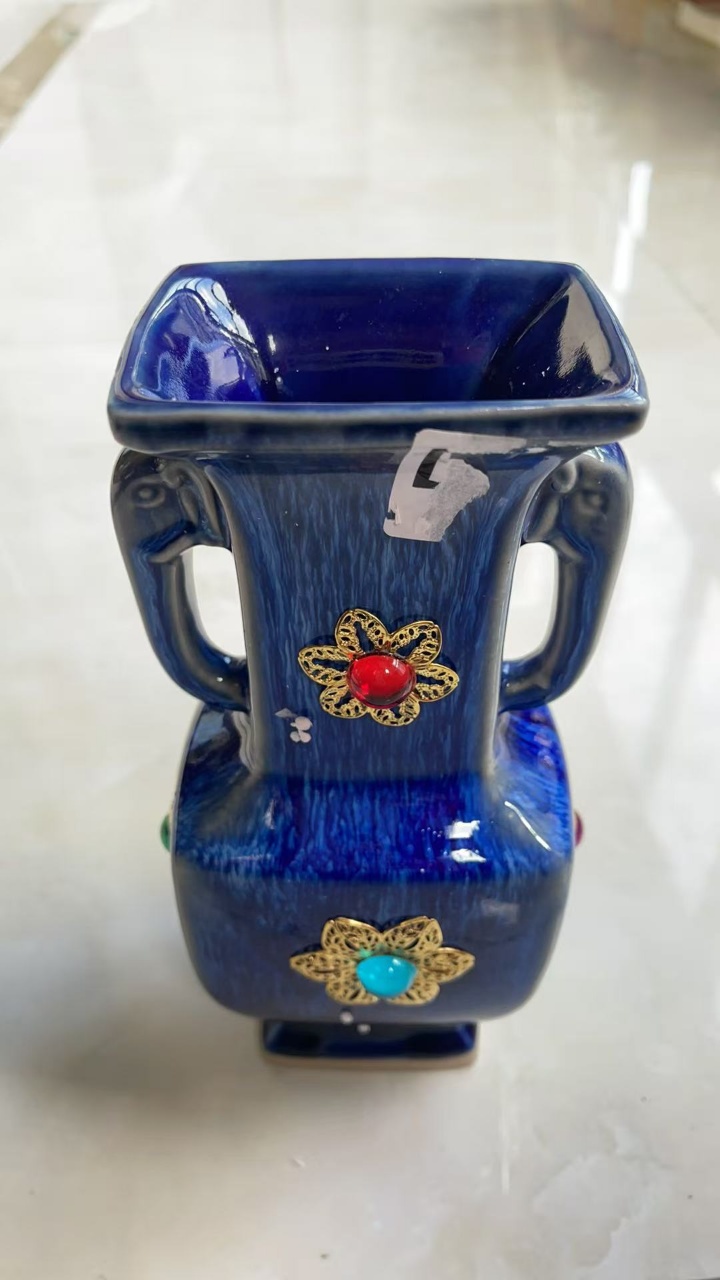 蓝釉象耳瓶