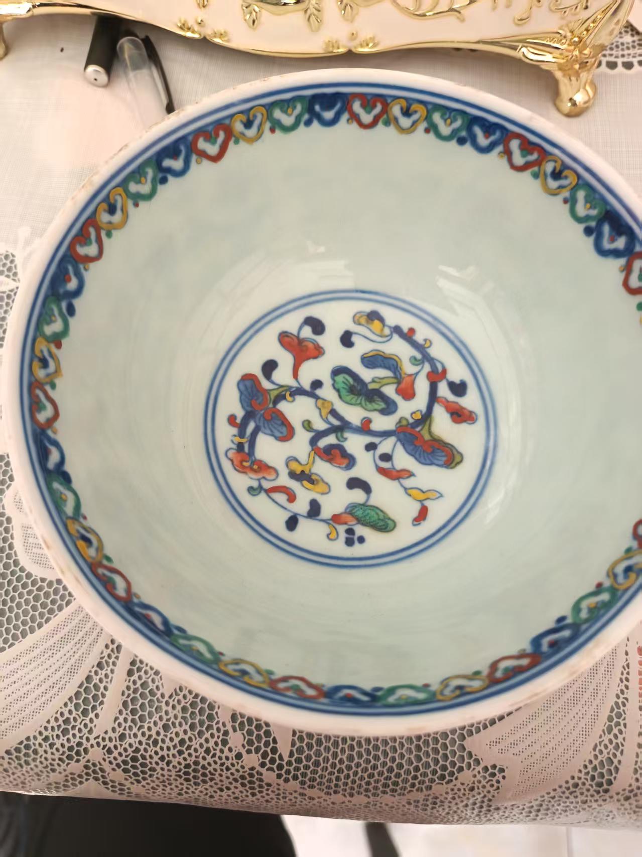 大清雍正缠枝连纹碗一对