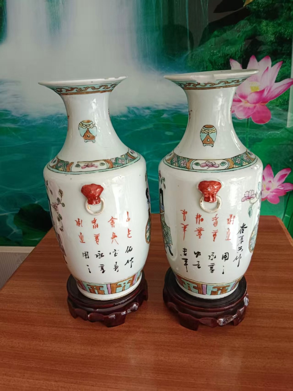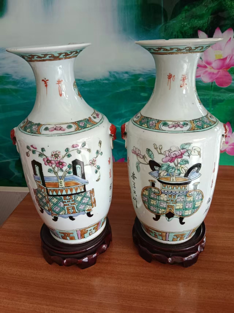 清代风格粉彩博古花卉赏瓶
