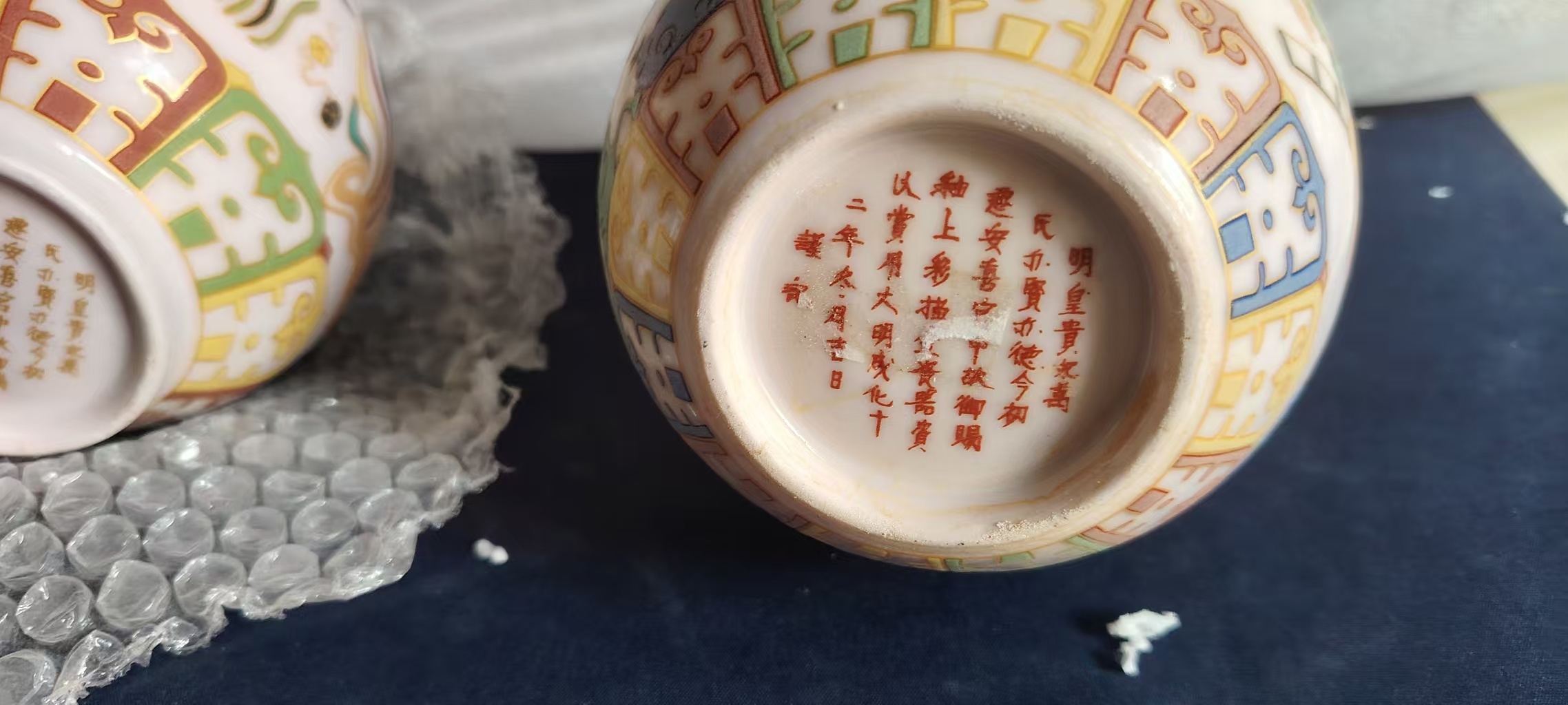 大明成化釉上彩赏瓶一对