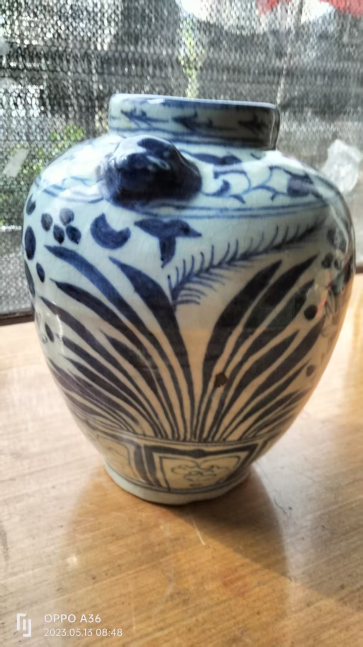 元青花双耳兽鱼藻纹,口直径:7.5厘米,腰:18厘米,高:23厘米
