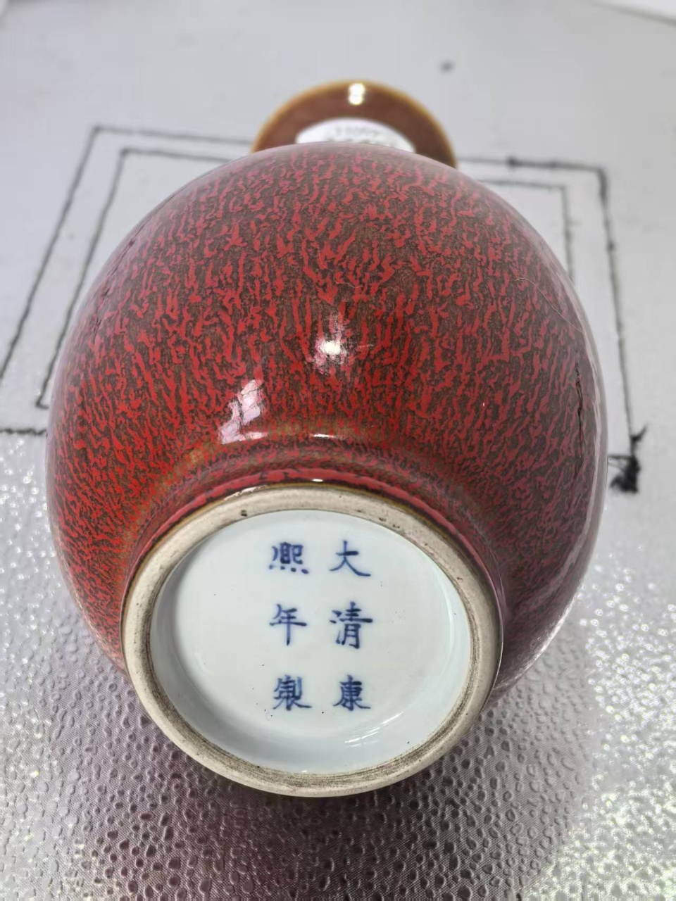 大清康熙牛血红双耳长胫瓶