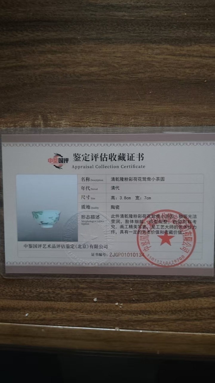 清代乾隆粉彩荷花鸳鸯纹小茶圆