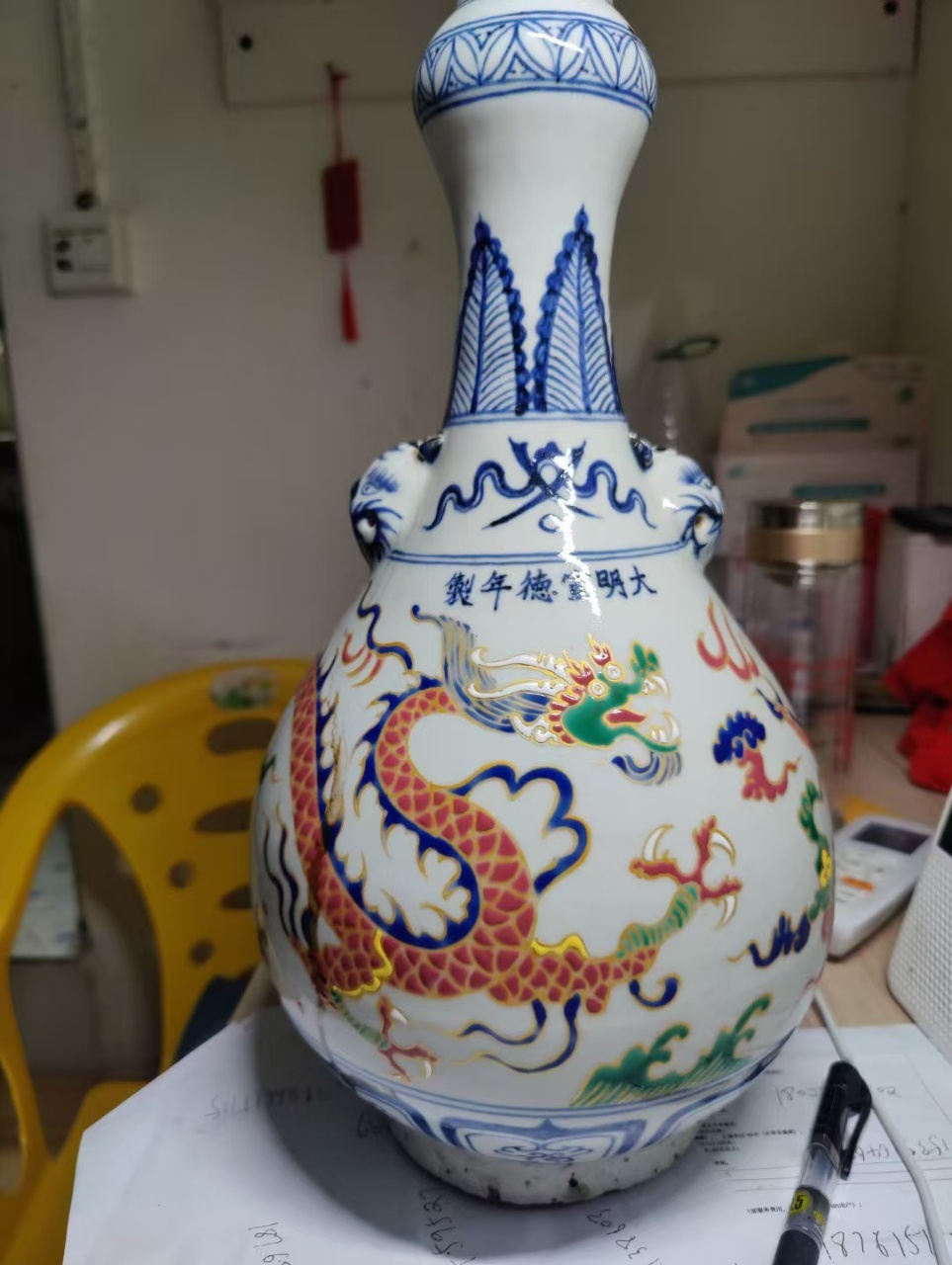珐华彩蒜头瓶