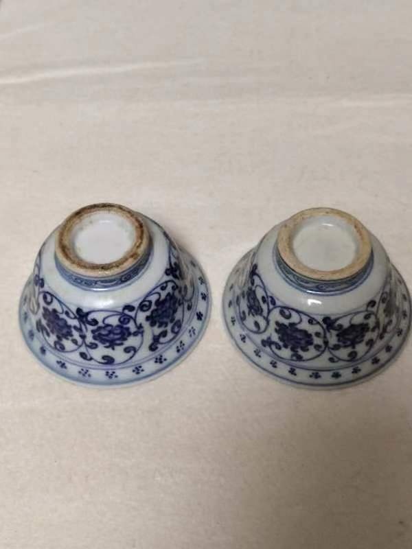 永乐青花内绘狮子纹压手杯一对