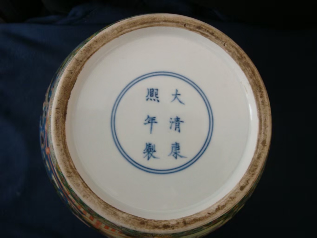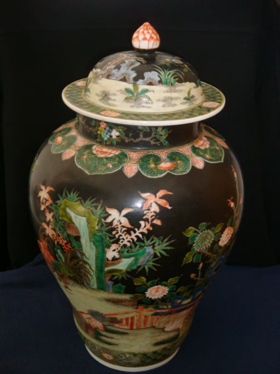 大清康熙墨地五彩将军罐