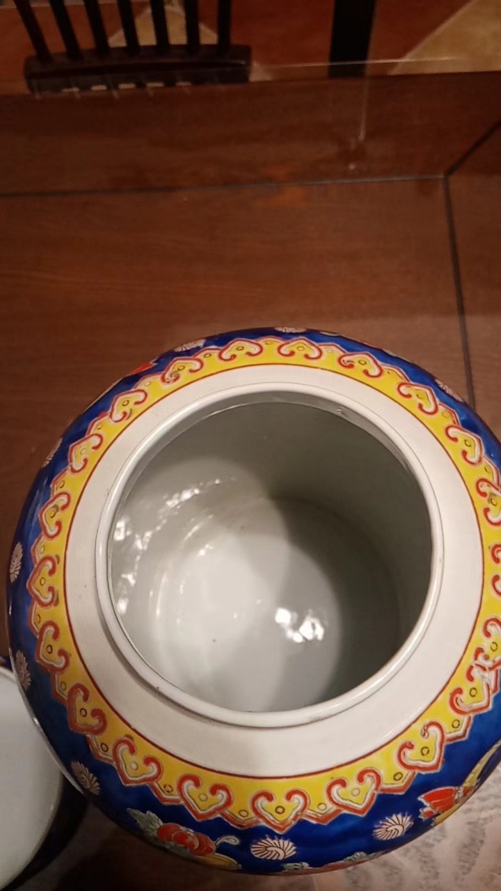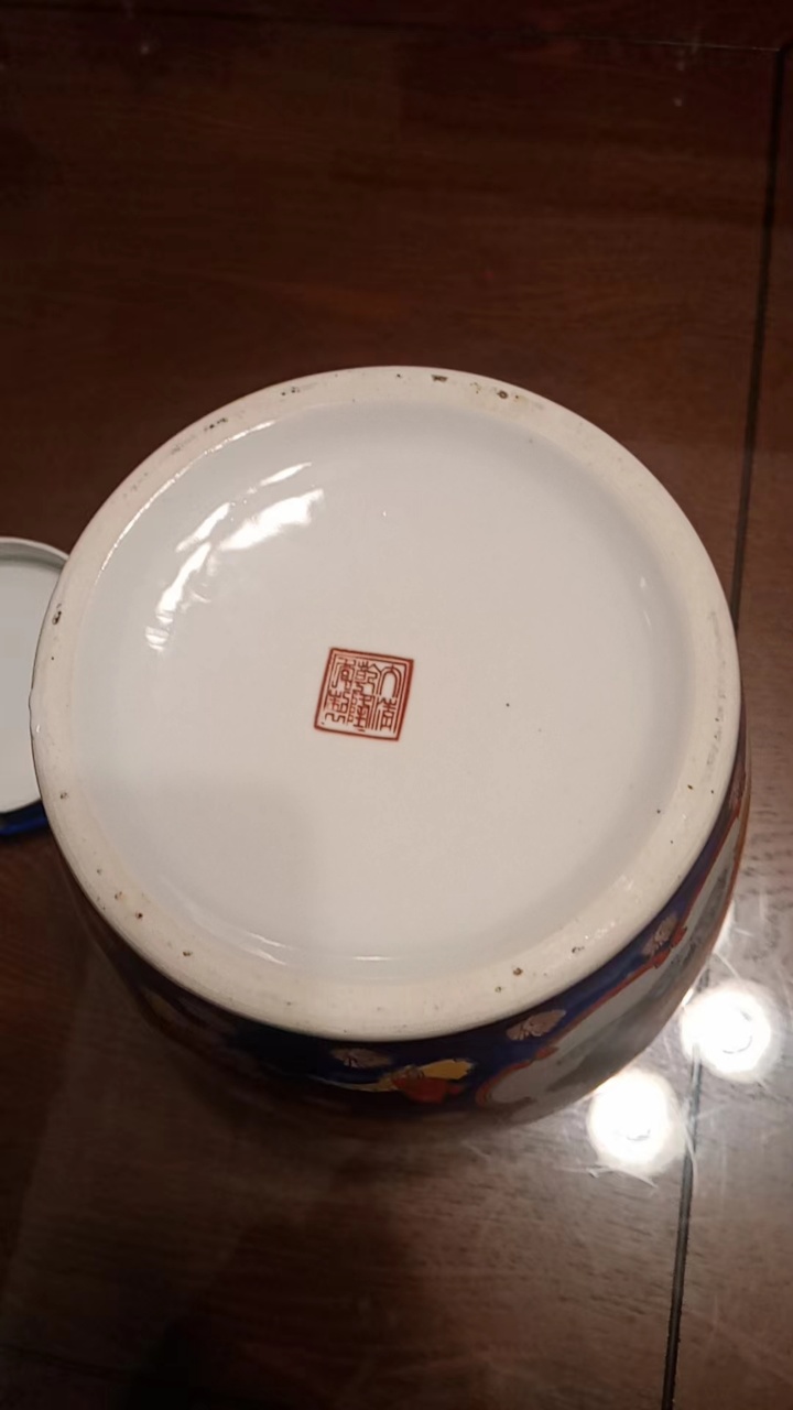 蓝地粉彩婴戏纹盖罐
