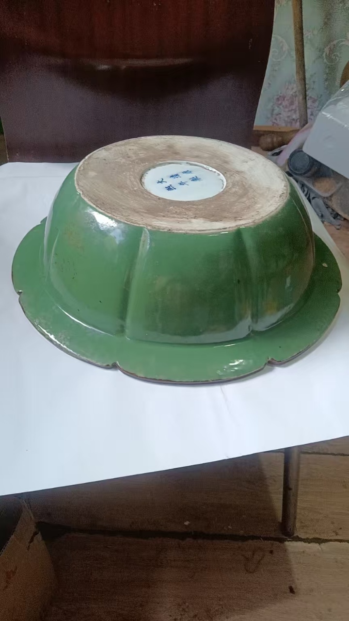 清代花口青花龙纹大盘