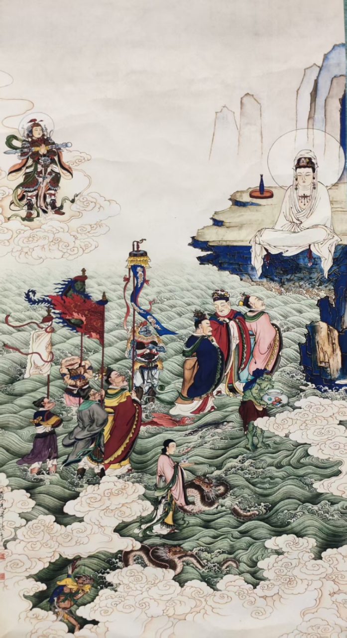 夏光桦《四海龙王朝拜观音图》