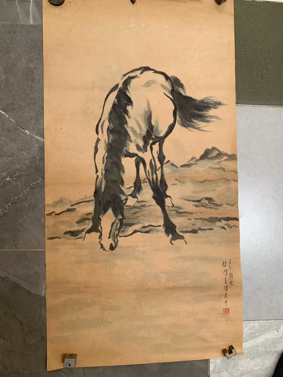 徐悲鸿《俊马图》作于壬午年。尺寸:995 mm X 550 mm