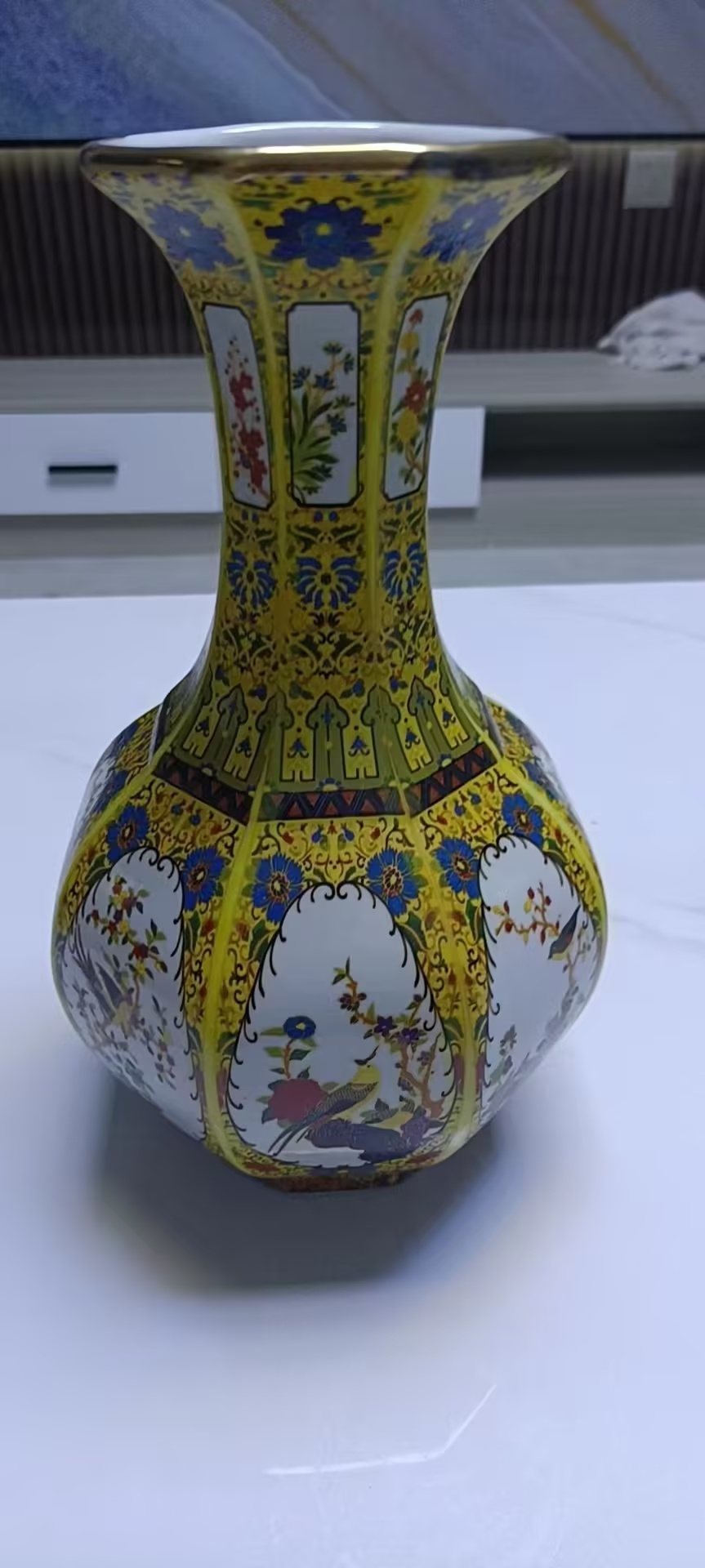 珐琅彩六方瓶!瓶身高28公分!瓶身直径15公分