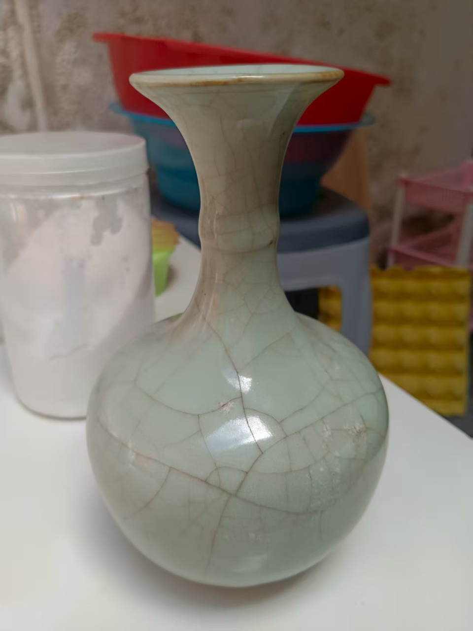 宋代龙泉官窑悬纹长颈瓶
