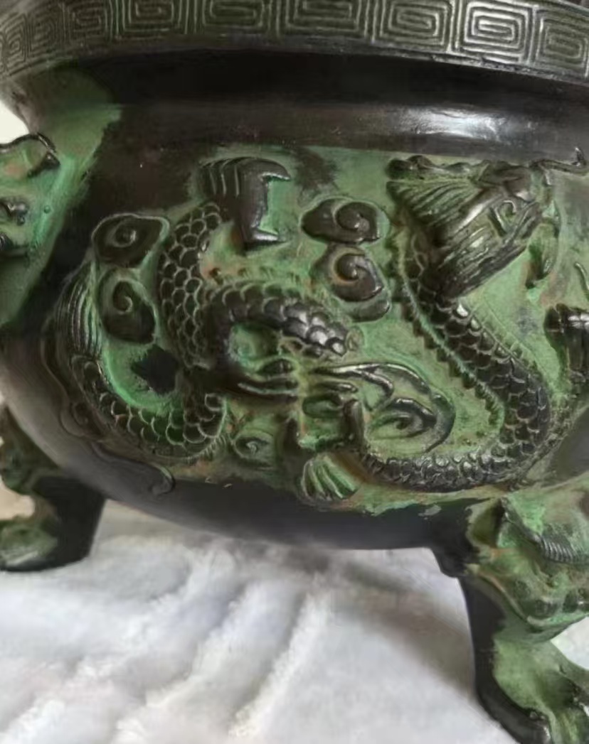大明宣德炉双耳,三足,双龙戏珠,五爪龙纹饰,大明宣年制