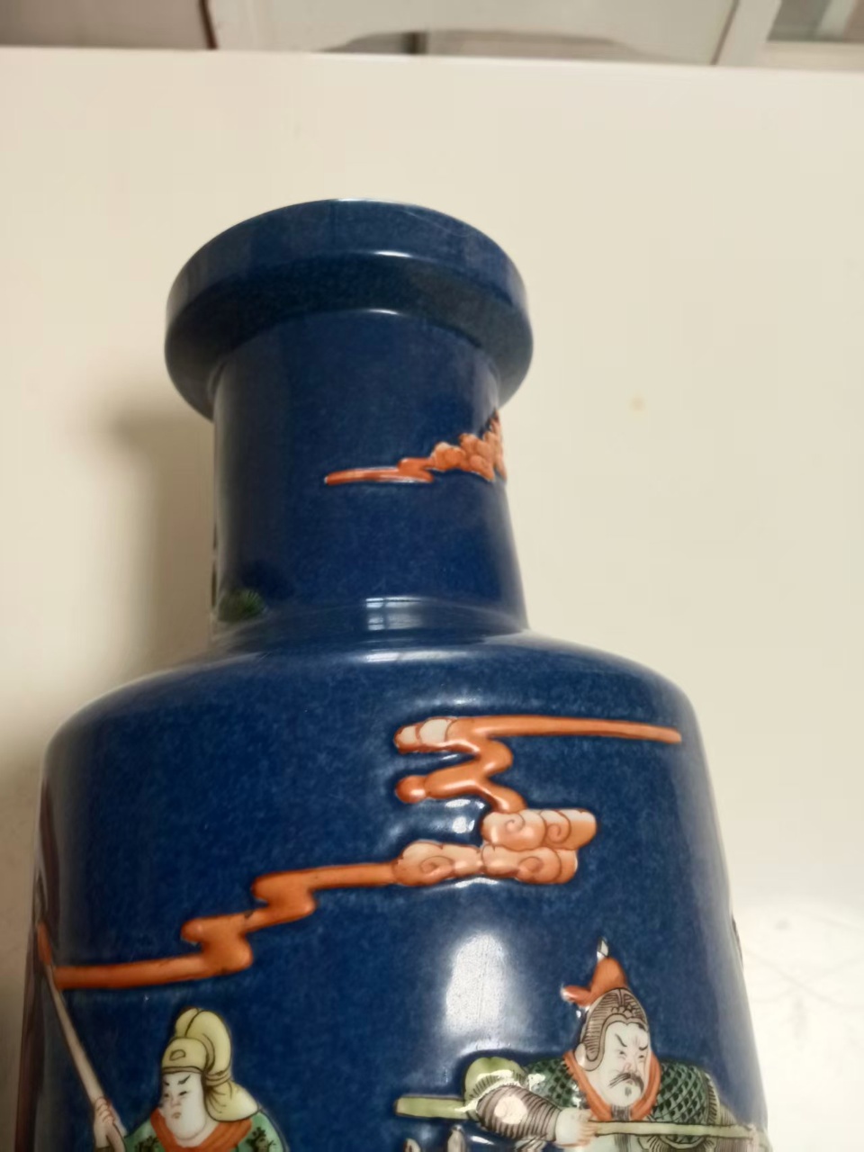 清康熙撒蓝油三国人物故事斗彩赏瓶