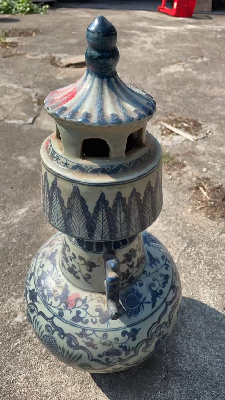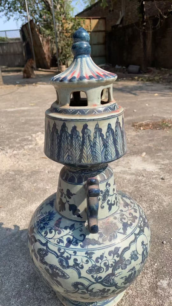 青花人物故事塔式炉