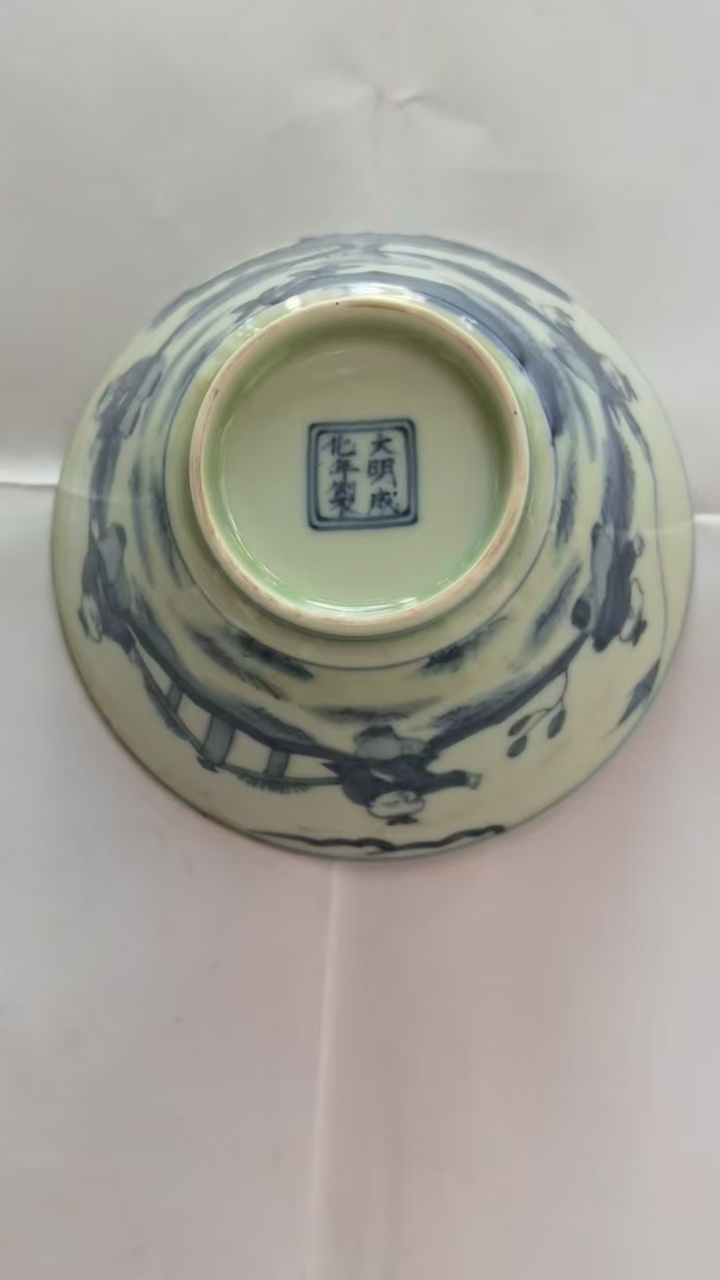 大明成化款婴戏孩儿斗笠碗
