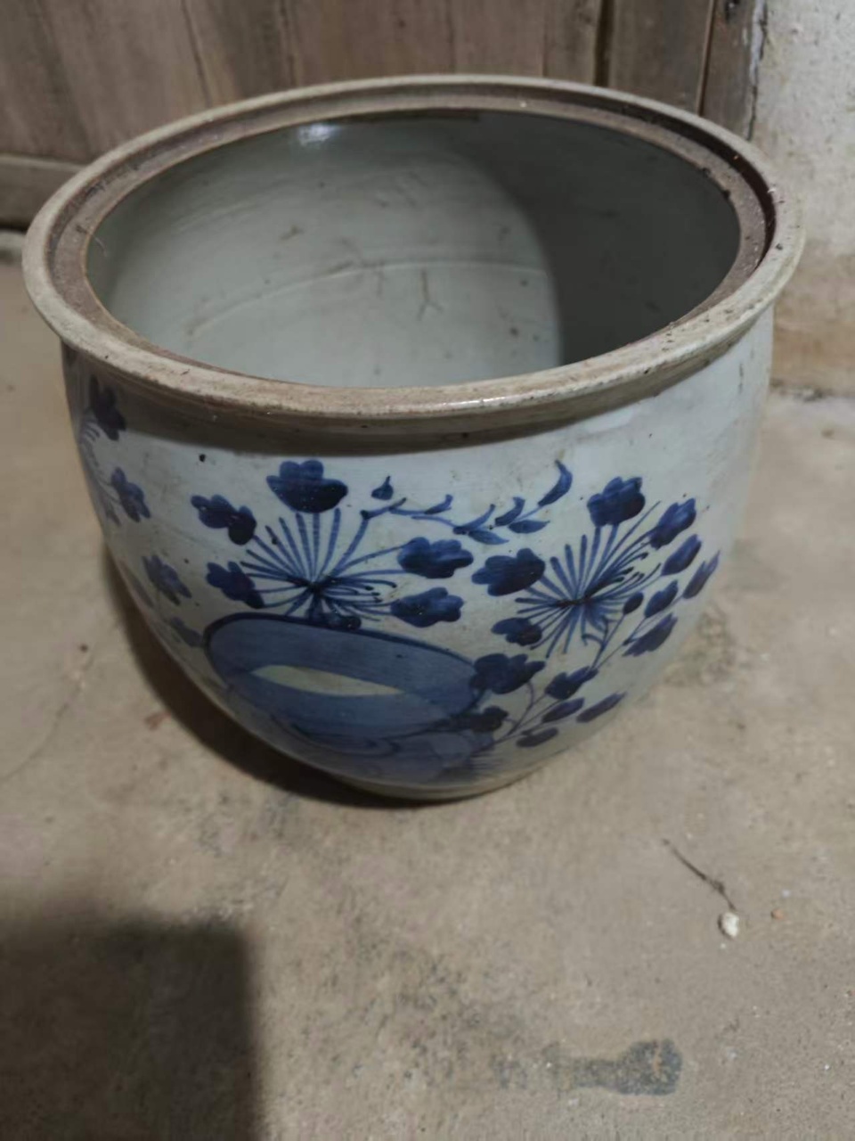 青花花卉纹卷缸