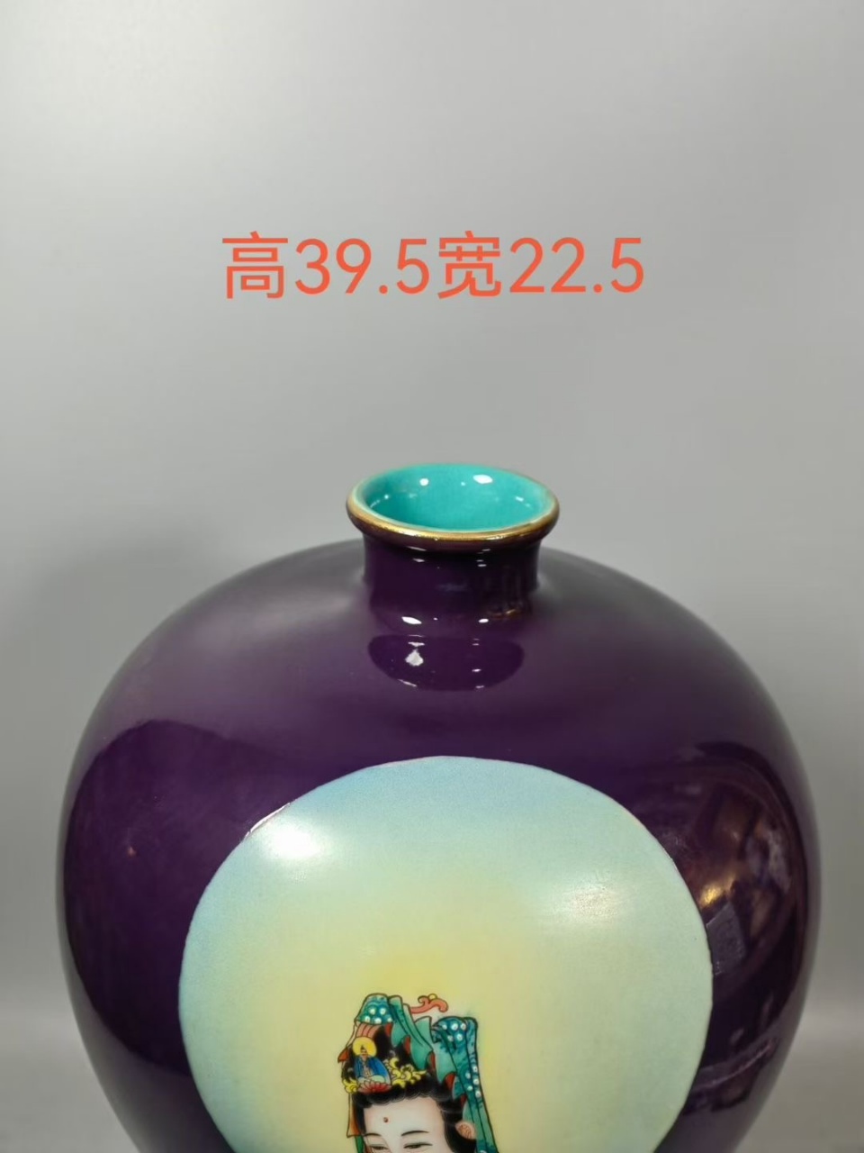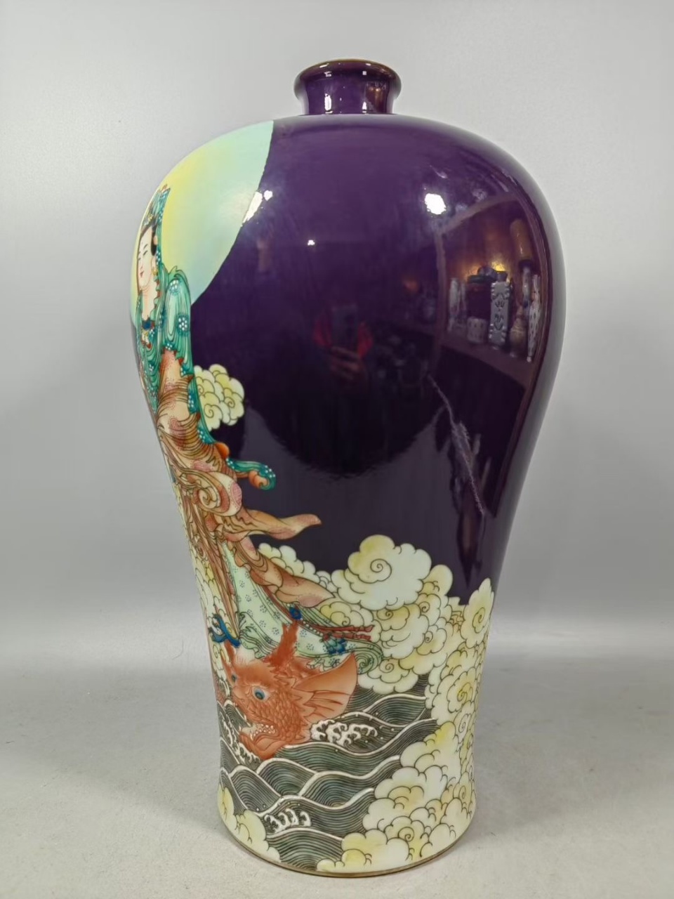 清乾隆款茄皮紫地珐琅彩观音纹梅瓶