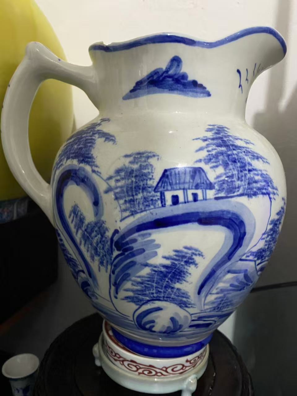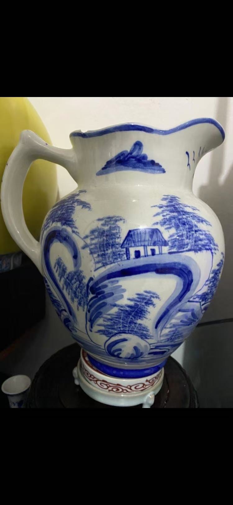 青花上水花口执壶