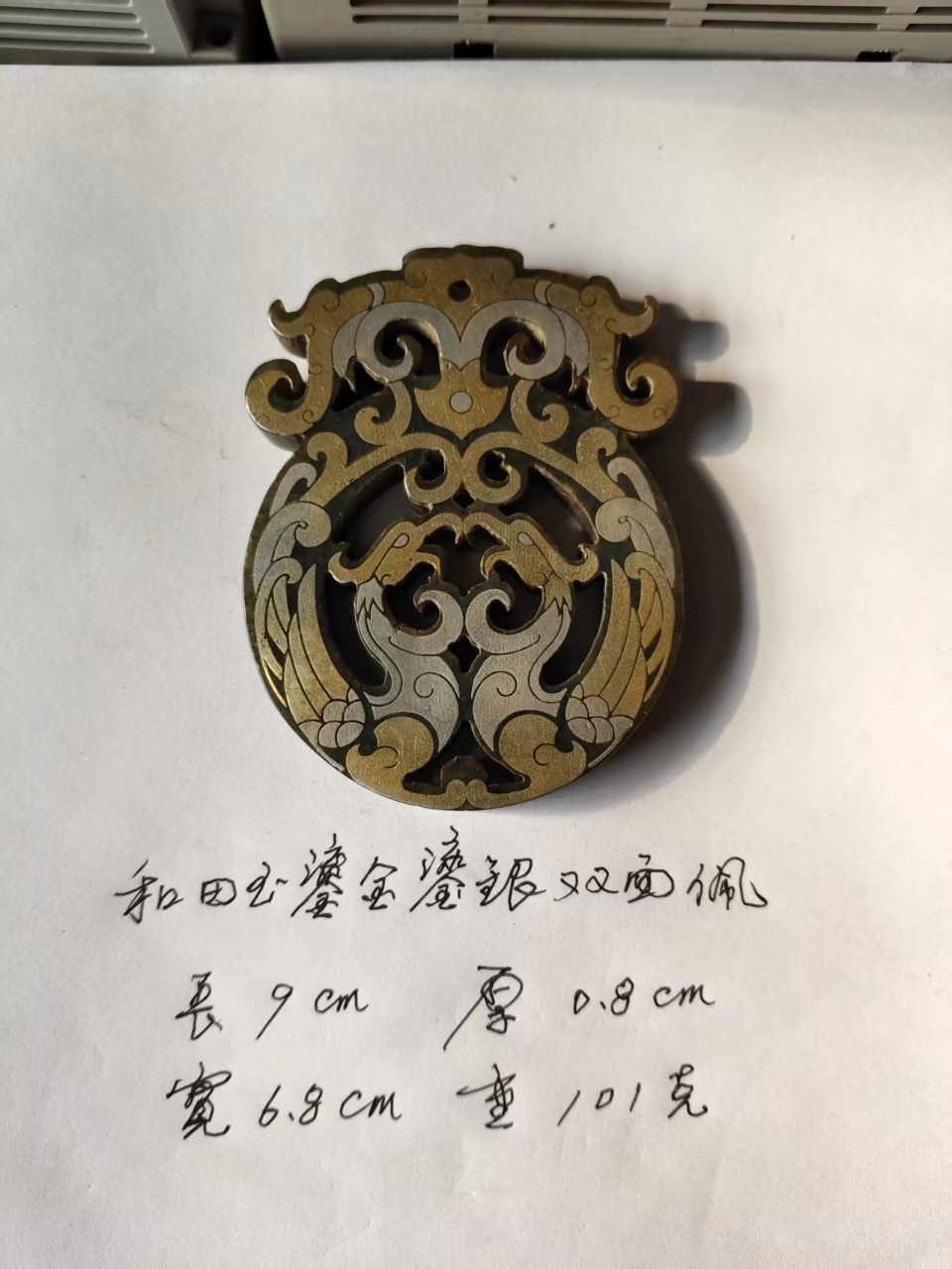 和田玉鎏金鎏银双面佩