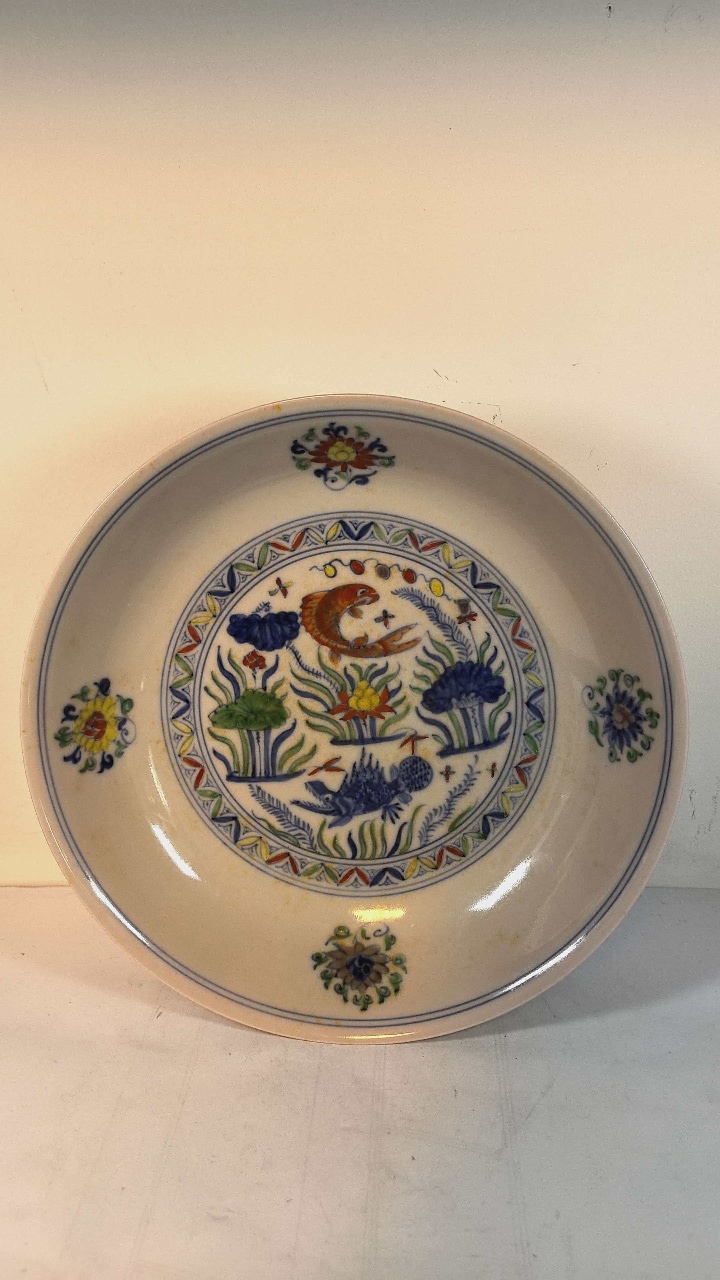 大明成化年制斗彩鱼藻纹盘