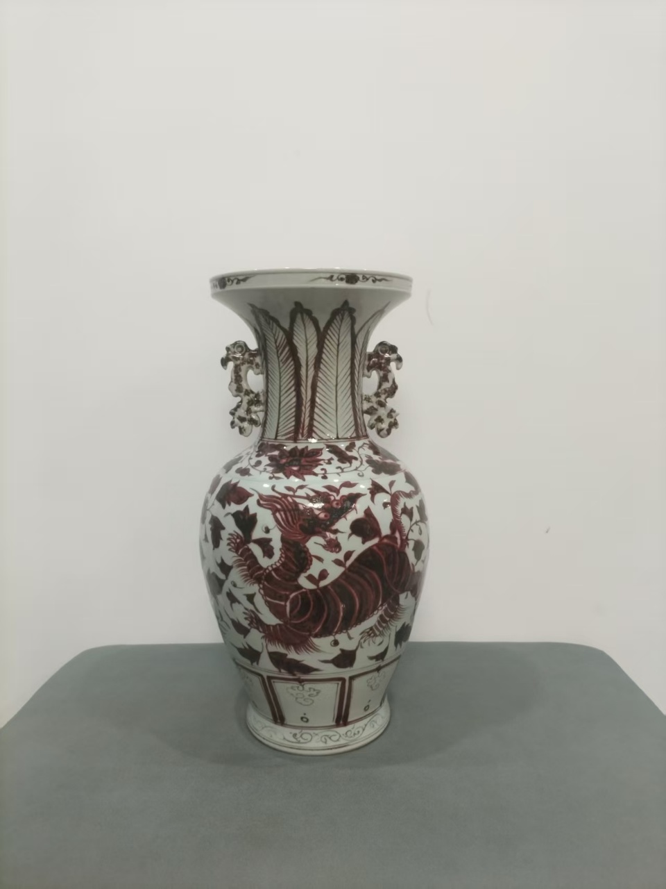 元代釉里红瑞兽纹双耳瓶(一对)