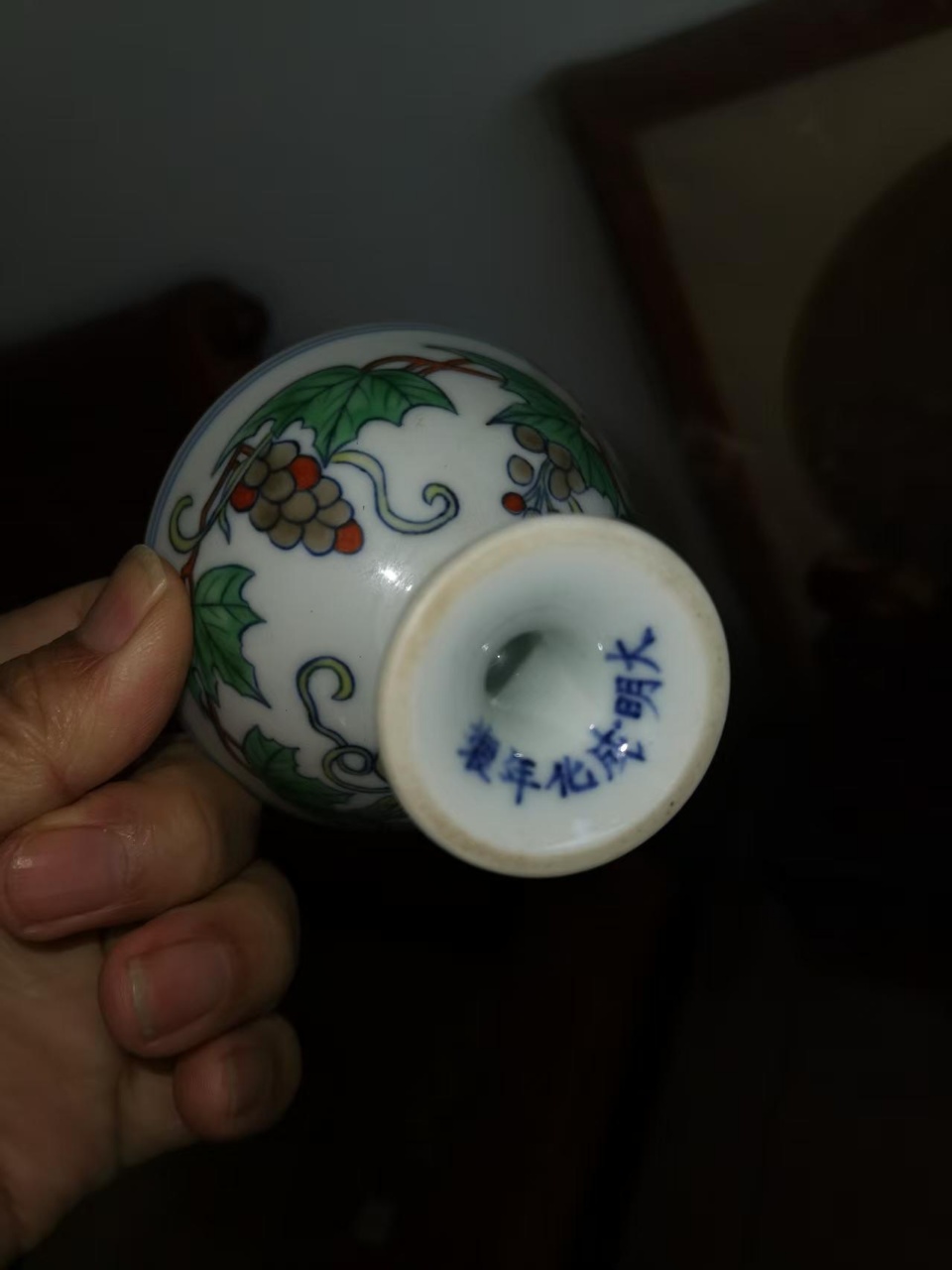大明成化年制斗彩葡萄纹高足杯